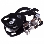 Компактный и легкий блок-ролик с зажимом. Предназначен для подъема тяжелых грузов. Может применяться в спасательных работах, для организации полиспастов. Стальной кулачек блокирует обратный ход веревки в устройстве.