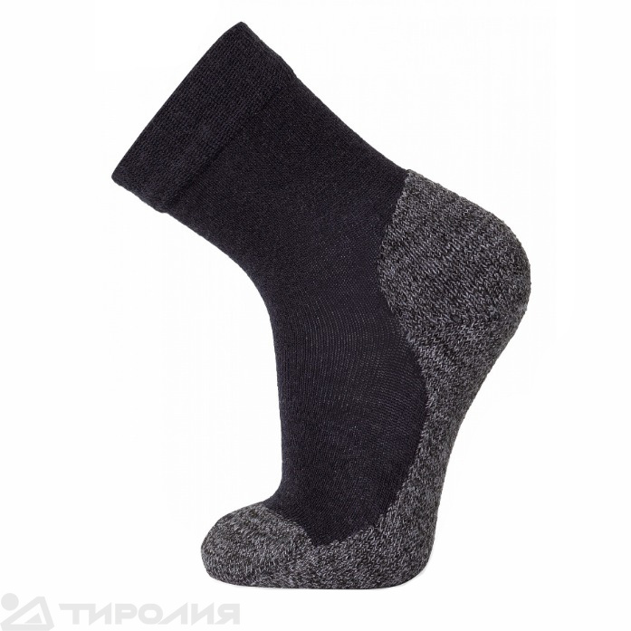 Зона стопы усилена двойной нитью, что увеличивает долговечность изделия. Носок, пятка и подошва выполнены в контрастном цвете, обозначая области максимального утепления. В районе свода стопы и щиколотки ткань тоньше, что делает носки удобными даже в обуви со шнуровкой. Эластичная анатомическая резинка фиксирует носки на ноге, не сдавливая сосуды.
