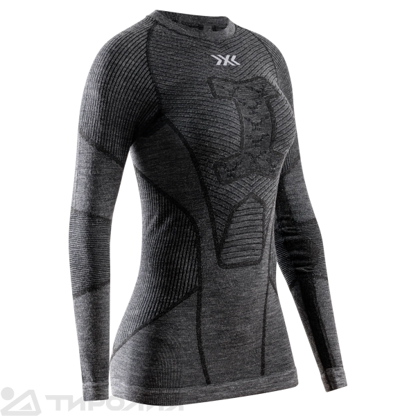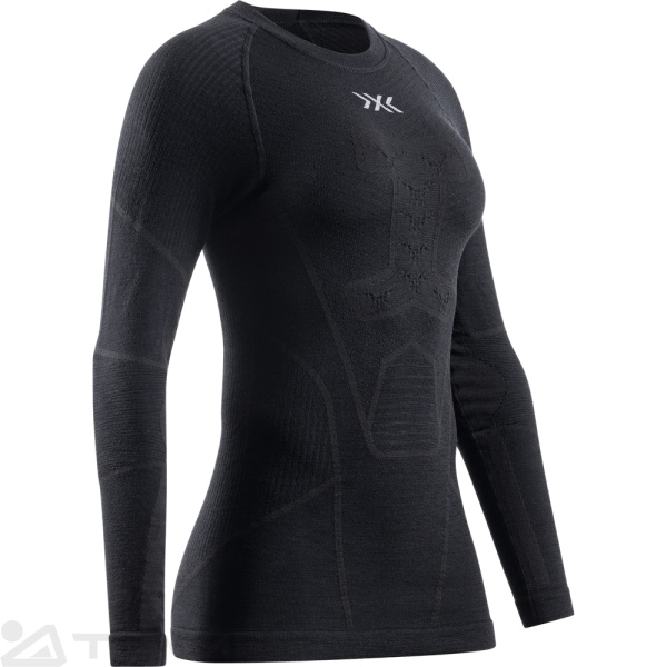 Футболка женская X-BIONIC: Symbio Merino Shirt LS Wmn - Термолонгслив X-BIONIC® SYMBIO MERINO SHIRT LS для зимних видов спорта создана для того, чтобы вам было комфортно в любых условиях. Катаетесь ли вы на лыжах с горы или идете пешком по заснеженному лесу, термолонгслив адаптируется к потребностям вашего тела, охлаждая вас, когда вам тепло, и согревая, когда вам холодно. Система 3D Bionic Sphere с технологией Thermosyphon эффективно обрабатывает избыток пота от физической активности, обеспечивая оптимальную прохладу, когда вам это больше всего нужно. Когда температура падает, структура системы обеспечивает идеальную изоляцию, сохраняя тепло и позволяя вам сосредоточиться на своей деятельности. Функция ISO-Shoulder образует изолирующий слой, который удерживает проникающий холод, обеспечивая защиту от охлаждающей верхней одежды. Независимо от того, насколько интенсивна ваша деятельность или насколько холодна погода, ваши плечи будут оставаться в тепле. Функция Expansion Ribs обеспечивает оптимальную температуру для суставов и связок, даже когда руки согнуты. Конструкция в виде гармошки сохраняет свои изолирующие свойства, обеспечивая полную свободу движений без ущерба для тепла. AirComPlex-Zone обеспечивает особую защиту чувствительной области солнечного сплетения. Специальные каналы удерживают теплый воздух, обеспечивая идеальную изоляцию в холод. Это означает, что вы можете сосредоточиться на своей работе, не беспокоясь о холоде.