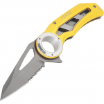 Нож имеет комбинированное (гладкое и зубчатое) лезвие из нержавеющей стали, позволяющее легко резать веревку и репшнур.